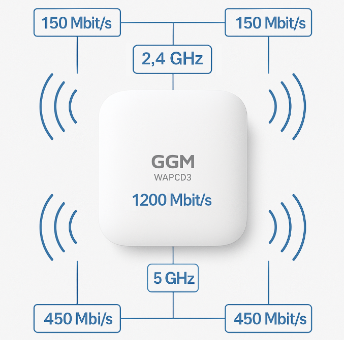 Ilmoitettu tiedonsiirtonopeus on teoreettinen ja poikkeaa havaittavasta todellisesta läpimenosta. Tuotekuvauksessa mainitaan “enimmäissiirtonopeus”, esimerkiksi 1 200 Mbit/s WAPCD3:lle tai 1 800 Mbit/s WAPAX1800:lle.