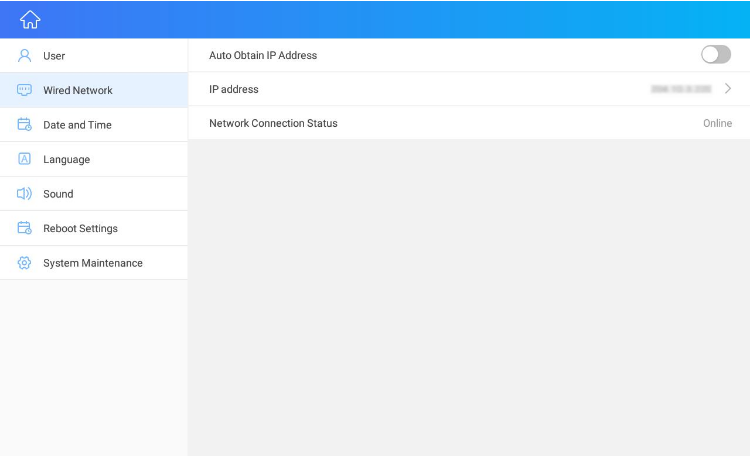 - Accédez au menu System Setting > Wired Network sur l'écran tactile