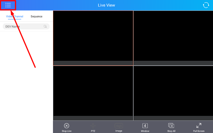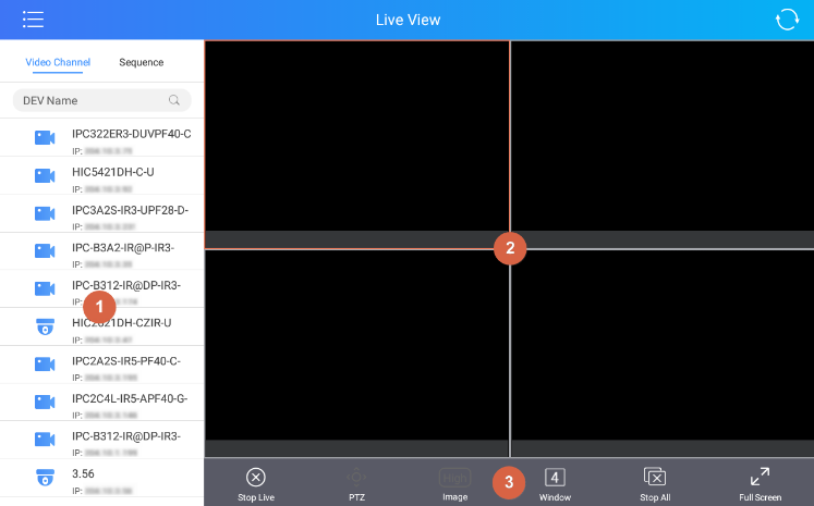 - Sur le Live View, sélectionnez votre caméra PTZ à contrôler