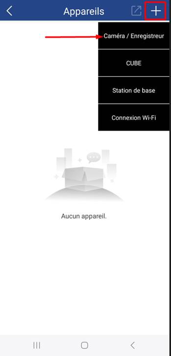 Puis appuyez sur la croix en haut à droite et sélectionnez « Caméra / Enregistreur ».