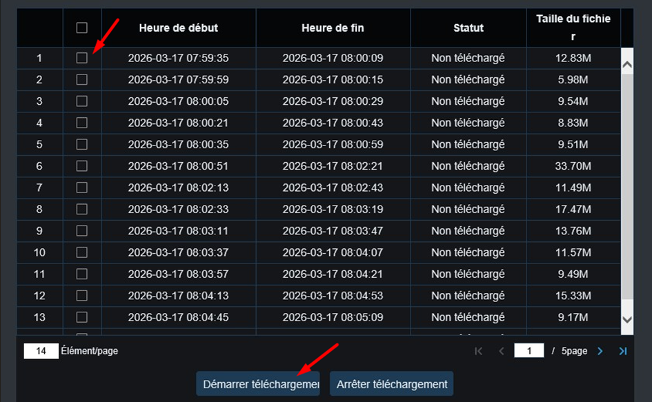 Successivamente si apre una pagina che mostra le registrazioni disponibili. Seleziona le fasce orari che ti interessano, poi clicca su "Avvia download" per salvare i file sul tuo dispositivo.